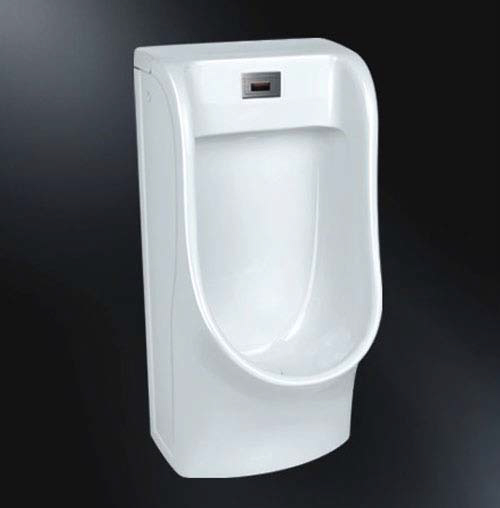 Concealed electronic flush valve for urinal operated by IR sensor with integrated ceramic, flushing duration and other settings are adjustable by remote control.